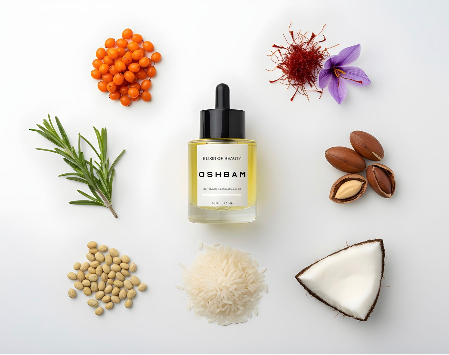 Inspired by this ancient meaning, OSHBAM captures that same moment of transformation. Just as the first light of sunrise brings warmth and life to the world, each drop of the OSHBAM elixir revives hair with nourishment, softness, and radiant shine.