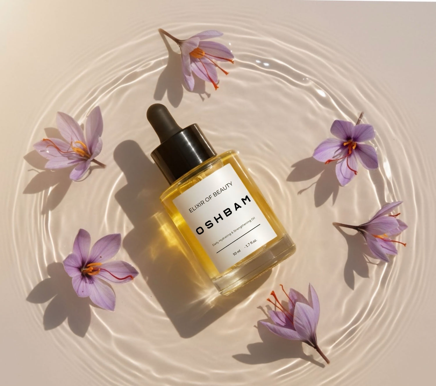 Powered by saffron, precious botanical oils, Biotin, and Vitamin E, OSHBAM brings together nature’s most luxurious ingredients in one lightweight hair elixir designed to nourish, smooth, and elevate your daily ritual.